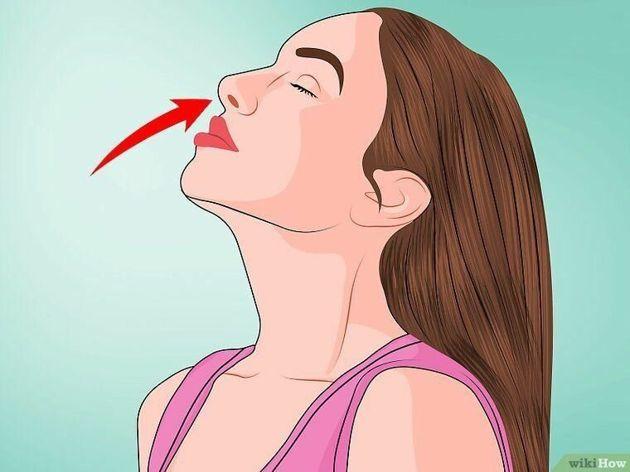 Перед тем, как приступить, обязательно делаем глубокий медленный вдох через нос, через 5 сек выдыхаем медленно через рот. Повторяем 5 раз. Делать вдохи м выдохи нужно с немного приподнятой головой.
