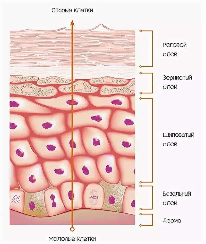 В норме ороговевшие частички-кератиноциты вовремя отшелушиваются, и их место занимают новые «свежие» клетки — они поднимаются к поверхности кожи с нижнего (базального) слоя эпидермиса, затвердевая по пути.