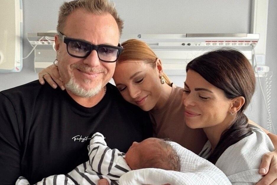 Яна опубликовала умилительное фото с бывшей участницей «Фабрики звезд-5» и ее избранником. Исполнитель хита «Аэропорты» в очках и черной футболке держал на руках новорожденную малышку в полосатом комбинезоне. Наталья и Яна стояли рядом, обнимая друг друга. Молодая мама поддерживала голову крошки.