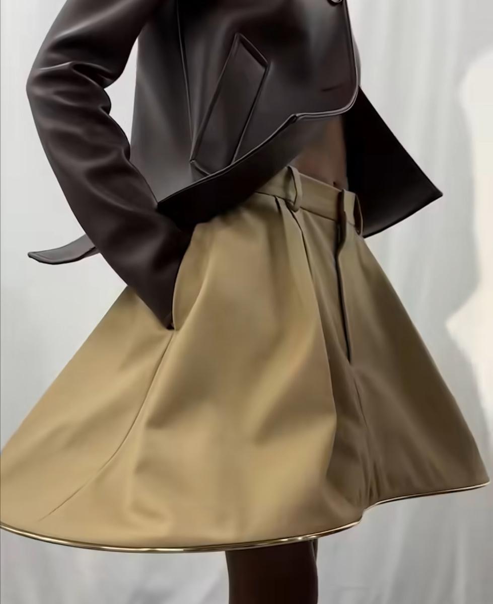 Кожа и замша: коже в 2025 уделяется большое внимание, это уже не просто накидки/куртки, а полноценный образ: платья, комбинезон, юбки и топы.