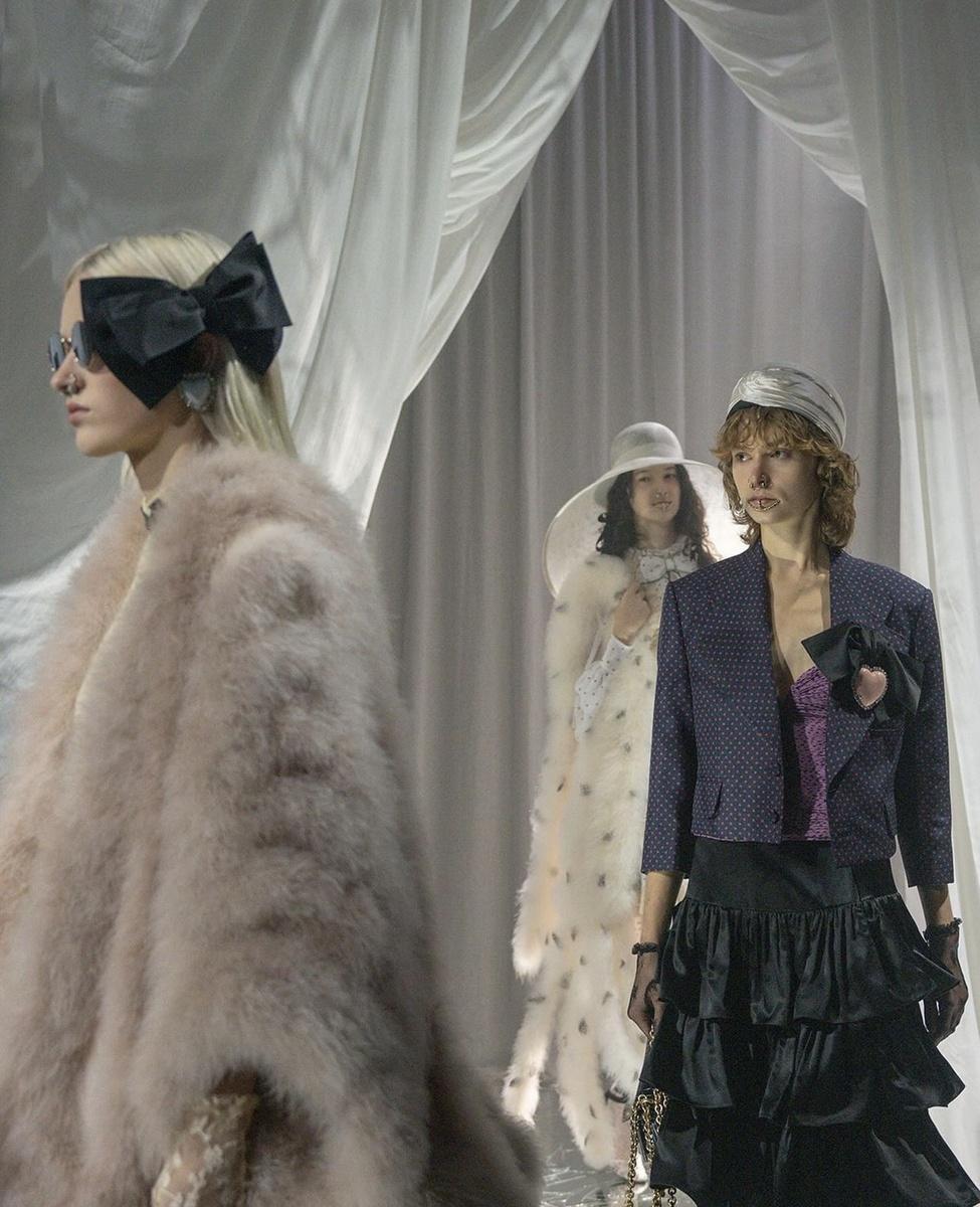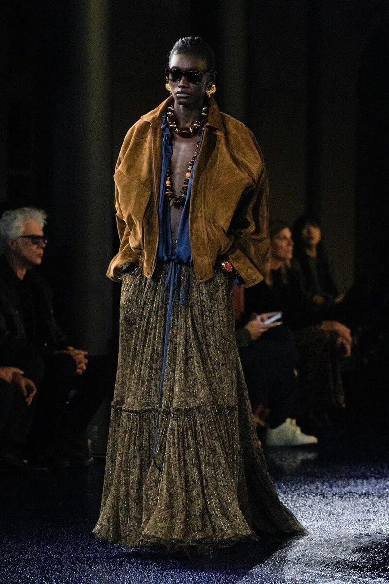 Французский бренд подготовил один из самых стильных показов, только посмотрите на эти декорации, идеально дополняющие классические образы Saint Laurent.