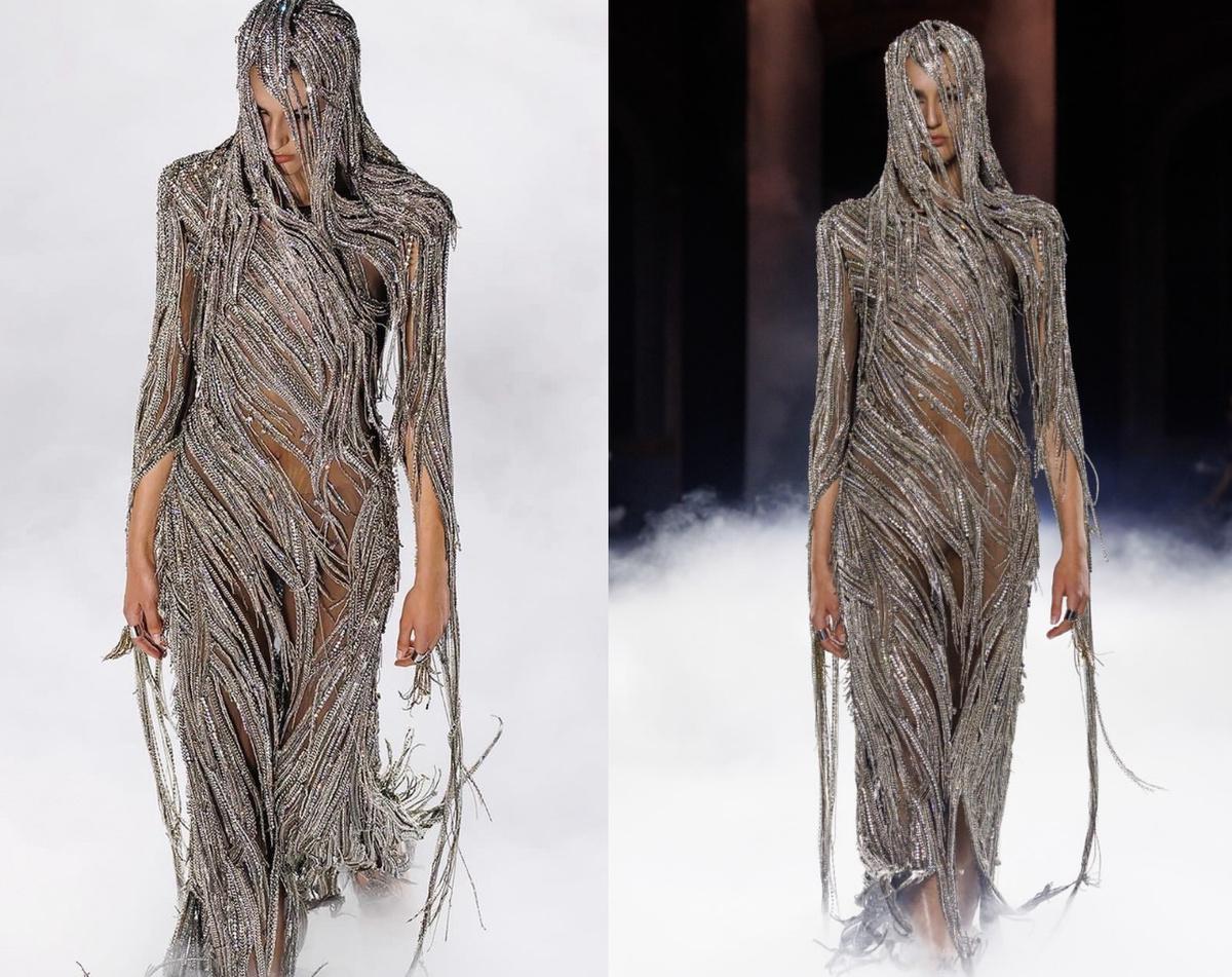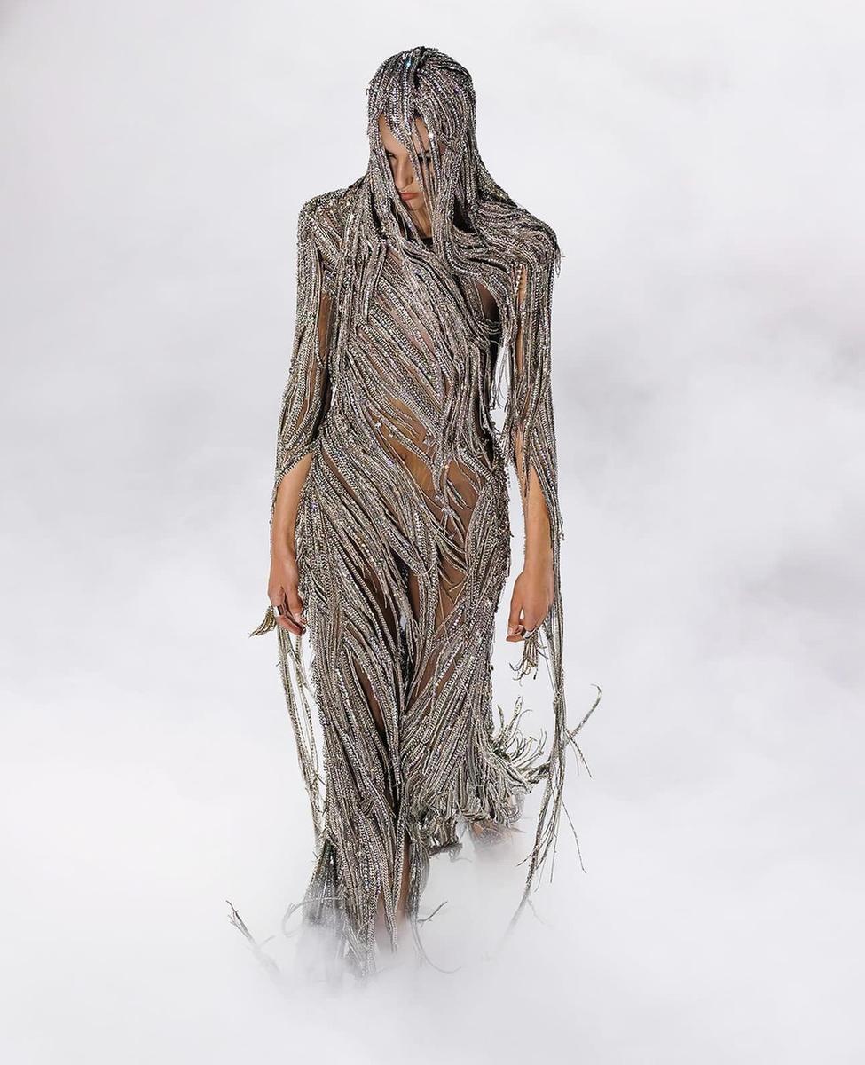 Alexander McQueen всегда удивляет совершенно волшебными образами, особенно финальный образ сверкающего платья с «капюшоном».