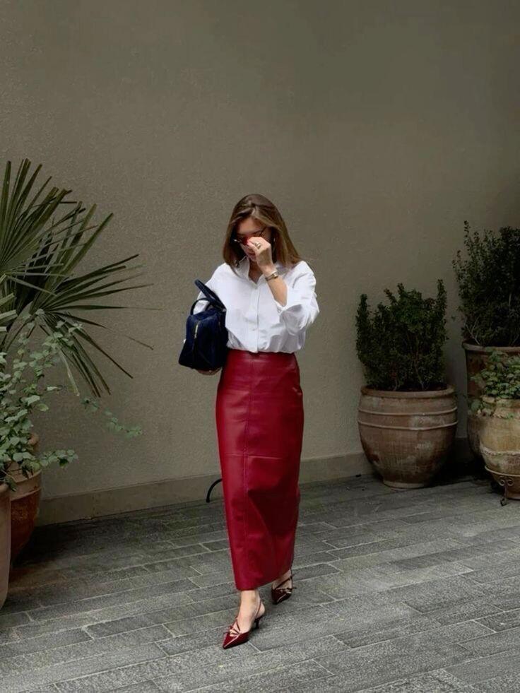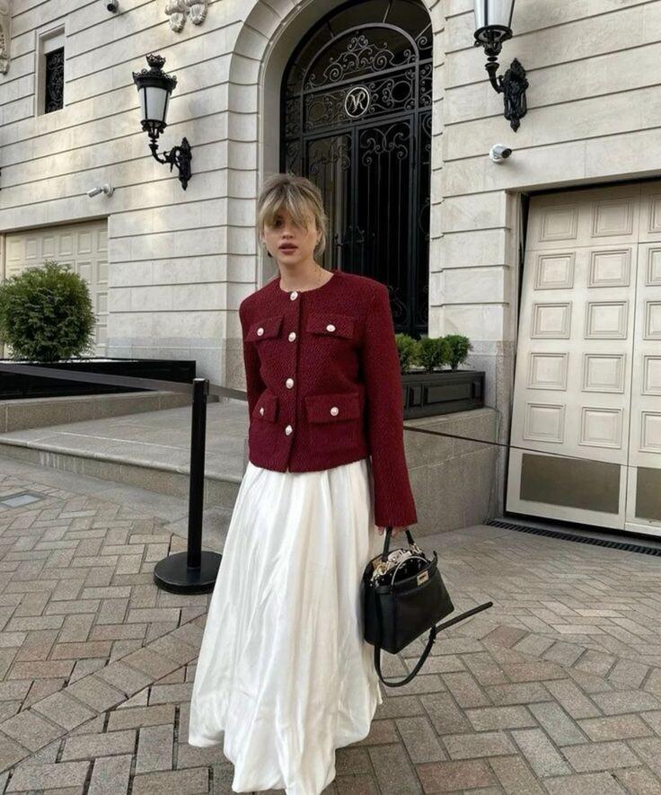 В весенне-летних коллекциях 2024 года этот цвет мелькал особенно часто. Так что за актуальность образа можно вообще не переживать, ведь оттенки бургунди — тренд.
