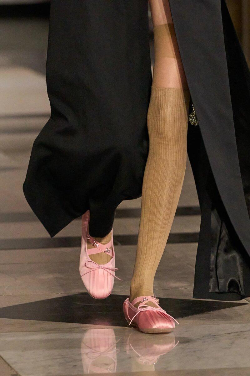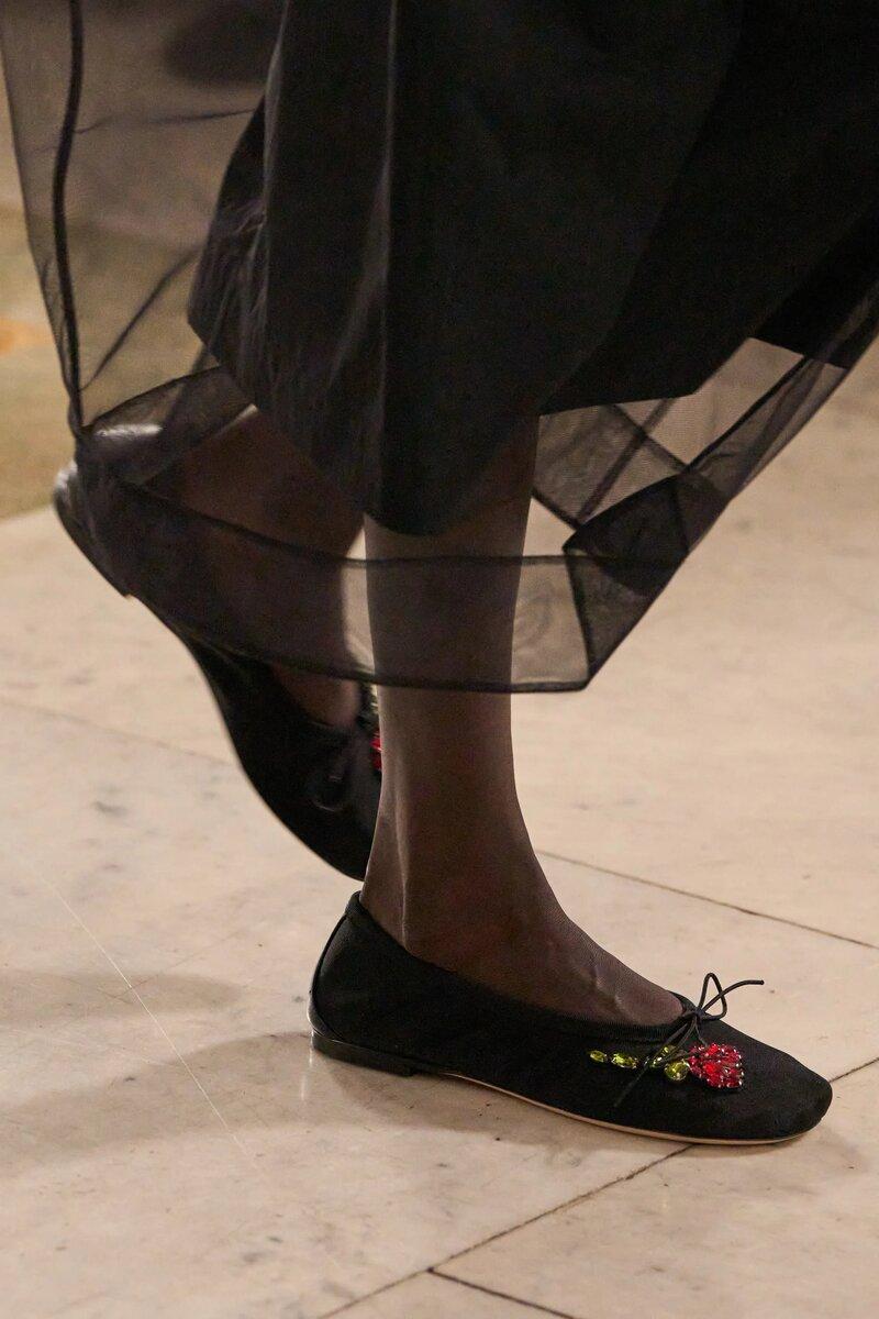 2 место по итогам показов получили балетки, которые по-прежнему будут самой популярной обувью весеннего сезона 2025. Новую вариацию любимой обуви Одри Хепберн показали Simone Rocha, Michael Kors, Tory Burch и Prabal Gurung.