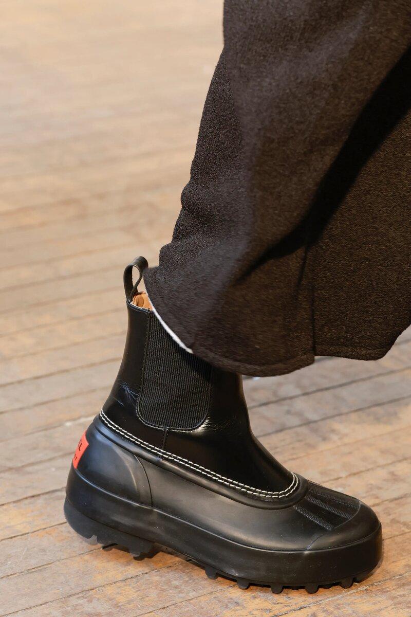Первое место заняли Ugly shoes или, как их еще называют «уродливая обувь», Да, на первый взгляд, эти творения могут показаться слишком странными, но цифры и их коммерчески успешные релизы говорят об обратном. Так что, если вы не против ярких, необычных образов, то присмотритесь к туфлям-щеткам Roksanda, калошам Proenza Schouler, сделанным в коллаборации с маркой аутдорной обуви Sorel, или обильно декорированным кроксам Simone Rocha.