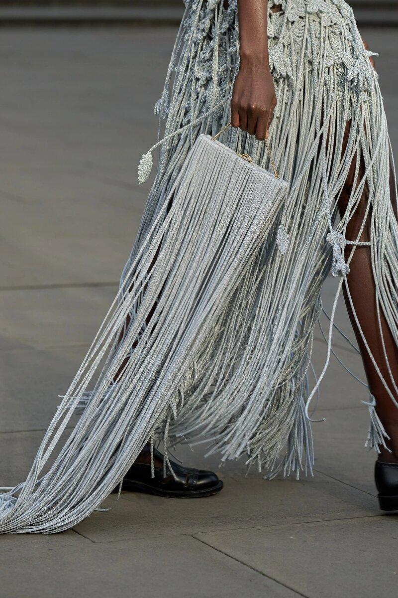 Неожиданно тренд на бахрому оказался очень живучим, вот и следующей весной сумки с этим подвижным декором будут на пике популярности. Присматриваемся к игривым корзинкам Michael Kors, к бахроме из рафии, как у того же Корса и у Nanushka, либо к супер эффектным моделям с настолько длинными струями бахромы, что они кажутся бесконечными, как у Erdem, Tory Burch и S.S. Daley.