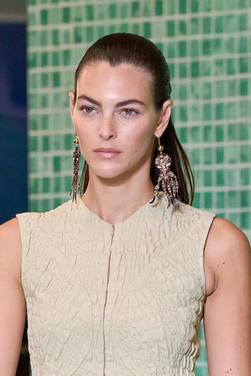 Что касается ювелирных изделий и бижутерии, то альтернативного мнения нет — самым модным украшением весны 2025 единодушно признаны крупные серьги! Лучше длинные, а еще лучше такие, которые свисают до ключиц, как у Ralph Lauren, Simone Rocha, Tory Burch и Erdem.