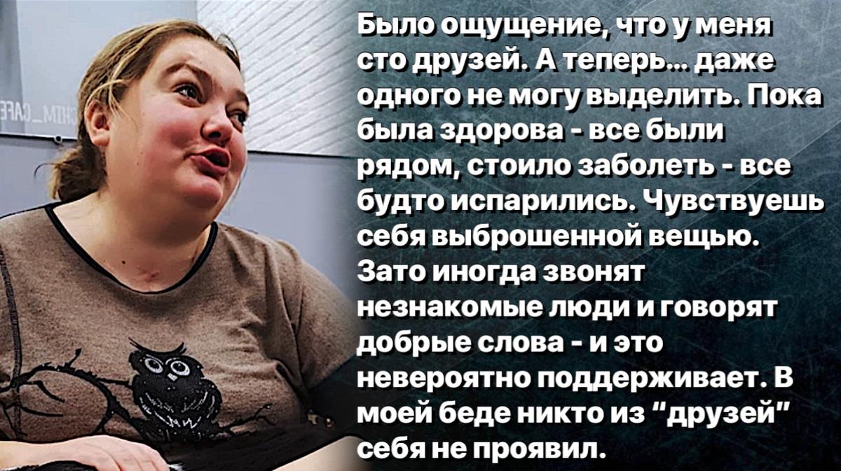 Несмотря на все испытания, Мария смогла сохранить силу духа и способность видеть светлые стороны жизни. Её слова о том, что многие не ценят того, что имеют, а здоровые люди часто жалуются из-за лени, звучат особенно мудро, учитывая всё пережитое. Хочется от всего сердца пожелать Марии крепкого здоровья, душевных сил и встретить людей, которые подарят ей настоящее счастье и поддержку!