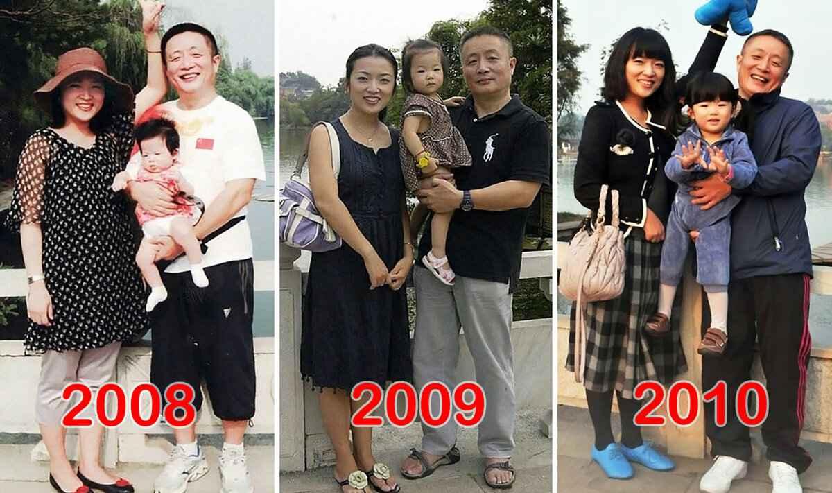 А вот следующий — 2008 год был крайне радостным для этой пары. Глава семейства стал дедушкой, и теперь на фотографии мы можем видеть представителей трех поколений семьи Юньцин. На том снимке внучка была, даже чуть моложе своей матери запечатленной в этом месте в первый раз. Ребенок очень любил проводить свое свободное время с дедушкой и радостно согласился позировать для фото.