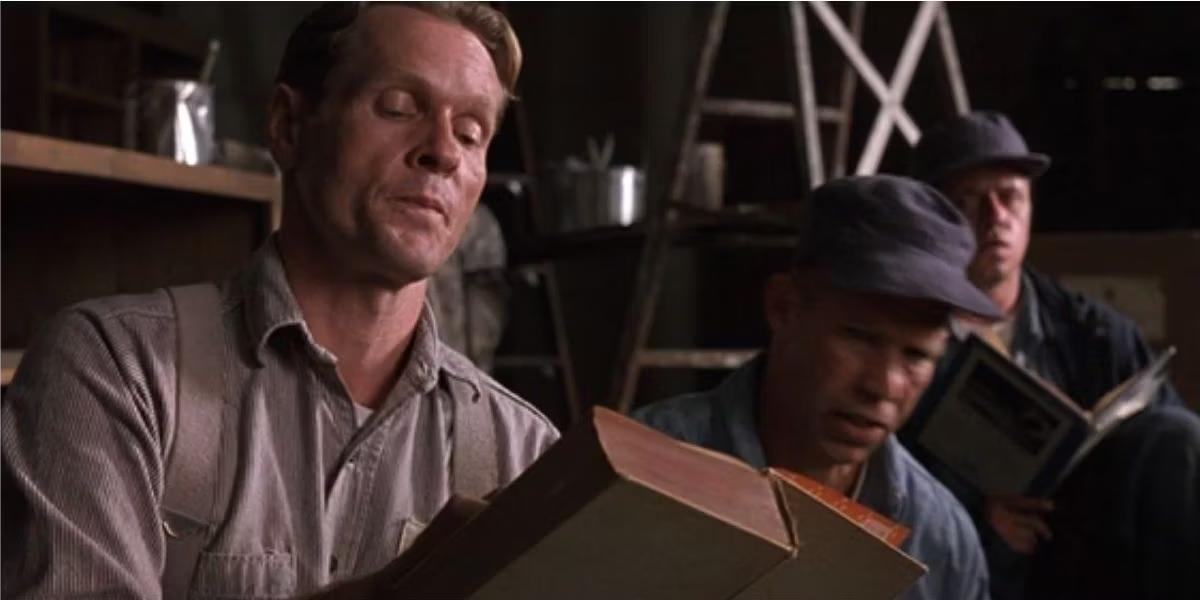 А как же Томми и его рассказ о психе-убийце из другой тюрьмы? О! Это лучшая из работ Дюфрейна, его главный шедевр помимо дыры в стене. Вы же помните, что молодой воришка оказался под опекой Энди в полном раздрае – он не просто не был готов к многолетнему заточению, Томми и к жизни-то подготовлен не был, не умел, к примеру, читать и писать. Дюфрейн провел с Томми несколько месяцев – полагаю, за это время он и внушил новому «другу» мысль и о своей невиновности, и про психопата, якобы убившего владельца гольф-клуба и его любовницу. А дальше оставалось закрепить мысль о своей невиновности у всех окружающих. Как это сделать? Через убийство основного свидетеля – Дюфрейн ловко вынуждает Нортона и Хэдли испачкать руки в крови, поймав их на крючок.