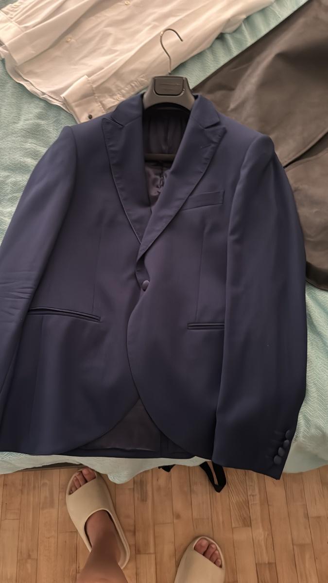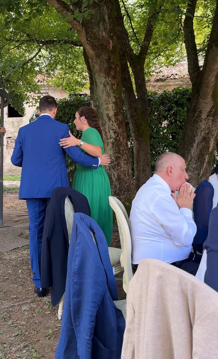 Он попросил меня проверить, все ли в порядке с его костюмом. Я правда не знаю, как у нас на свадьбах одеваются мужчины, но в Италии они приходят на свадьбу в белых рубашках и костюмах. Костюм обычно к вечеру снимают, остаются в белых рубашках.