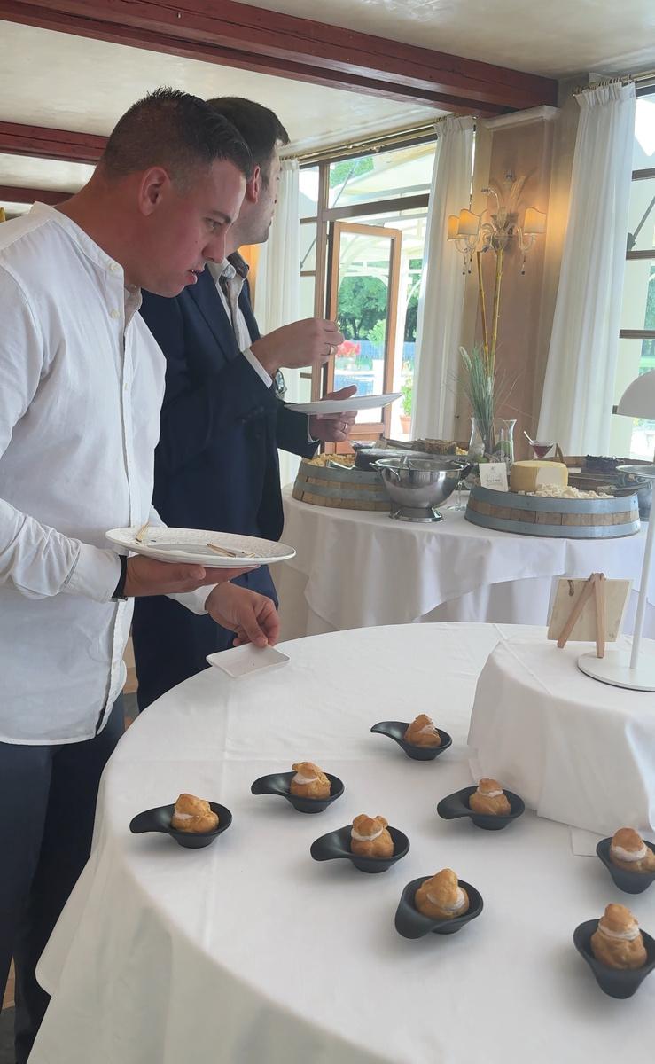 Официанты разносят гостям закуски. Напитки гости выбирают сами, у нас было просекко, апероль и какой-то легкий коктейль розового цвета.