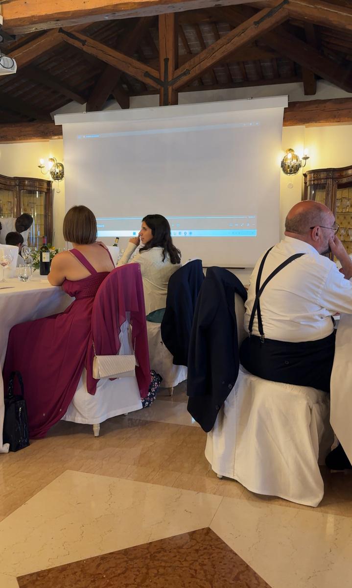 Затем гости танцевали, смотрели видео молодожёнов на проекторе, это тоже классика на итальянских свадьбах. Обычно снимают это видео во время мальчишника и девишника. Задают ребятам вопросы друг о друге, а потом склеивают видео.