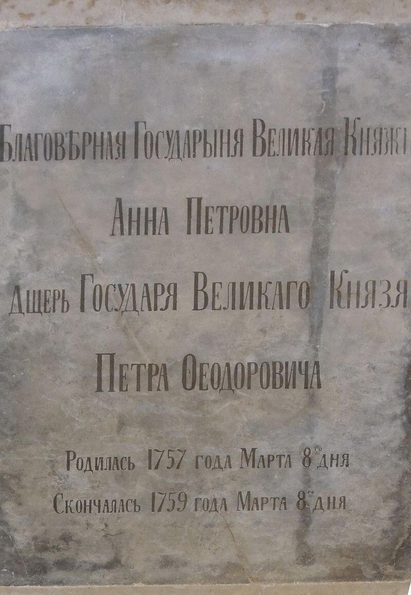 • Там можно найти могилу дочери Петра III и Екатерины II – Великой княжны Анны Петровны, которая Романова «по документам».