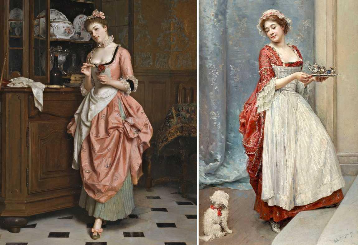 Картины XIX века, изображавшие горничных и камеристок. Слева — Emile Pierre Metzmacher, справа — Raimundo de Madrazo y Garreta. Источник — https://www.pinterest.ru/