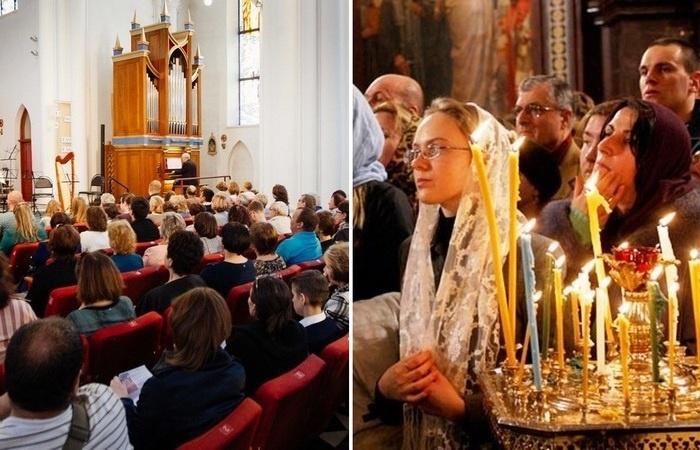 Если посмотреть на службу сначала в православном храме, а затем в католическом, то первое, что бросится в глаза, – это положение прихожан.