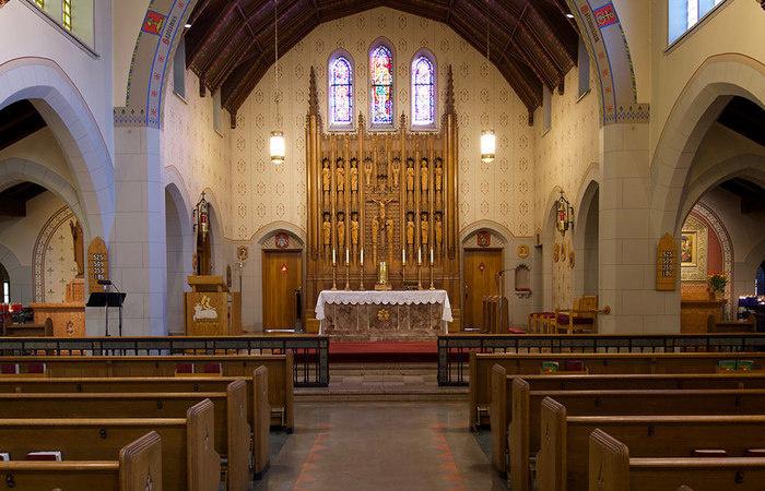 В католических церквях ровные ряды скамеек занимают основную часть молитвенного помещения, а в наших храмах скамейки (если они и есть) расположены, как правило, где-нибудь у стены в притворе.