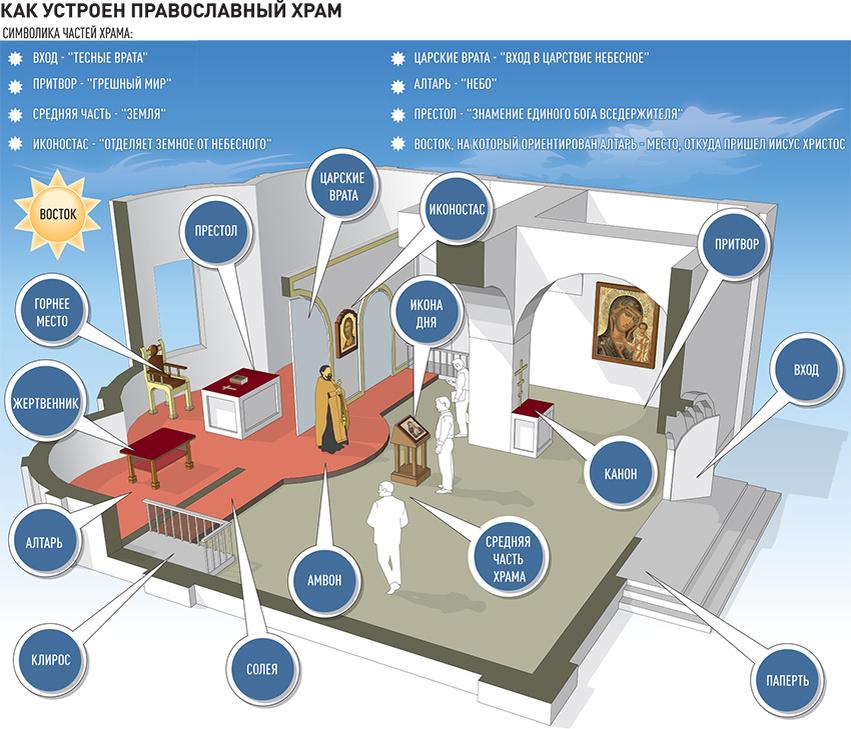 Появление и распространение таких представлений можно объяснить и различиями в интерьерах католических и русских храмов. Следует обратиться к особенностями храмовой архитектуры. Учитывая суровые климатические условия, на Руси храмы строили небольшими, чтобы сохранять тепло, а вот желавших попасть на службу было немало.