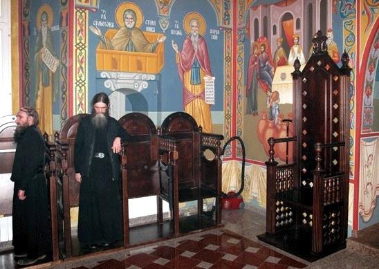 Однако если мы окажемся в греческом православном храмы, то мы увидим там те же самые скамейки, что и у католиков. Там же мы обязательно обнаружим стасидии — высокие деревянные кресла с откидным сиденьем. Но, несмотря на наличие скамеек, прихожане греческих храмов большую часть службы тоже проводят стоя.