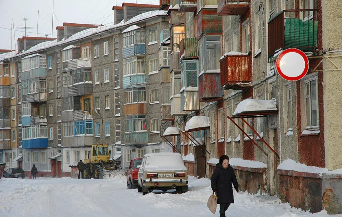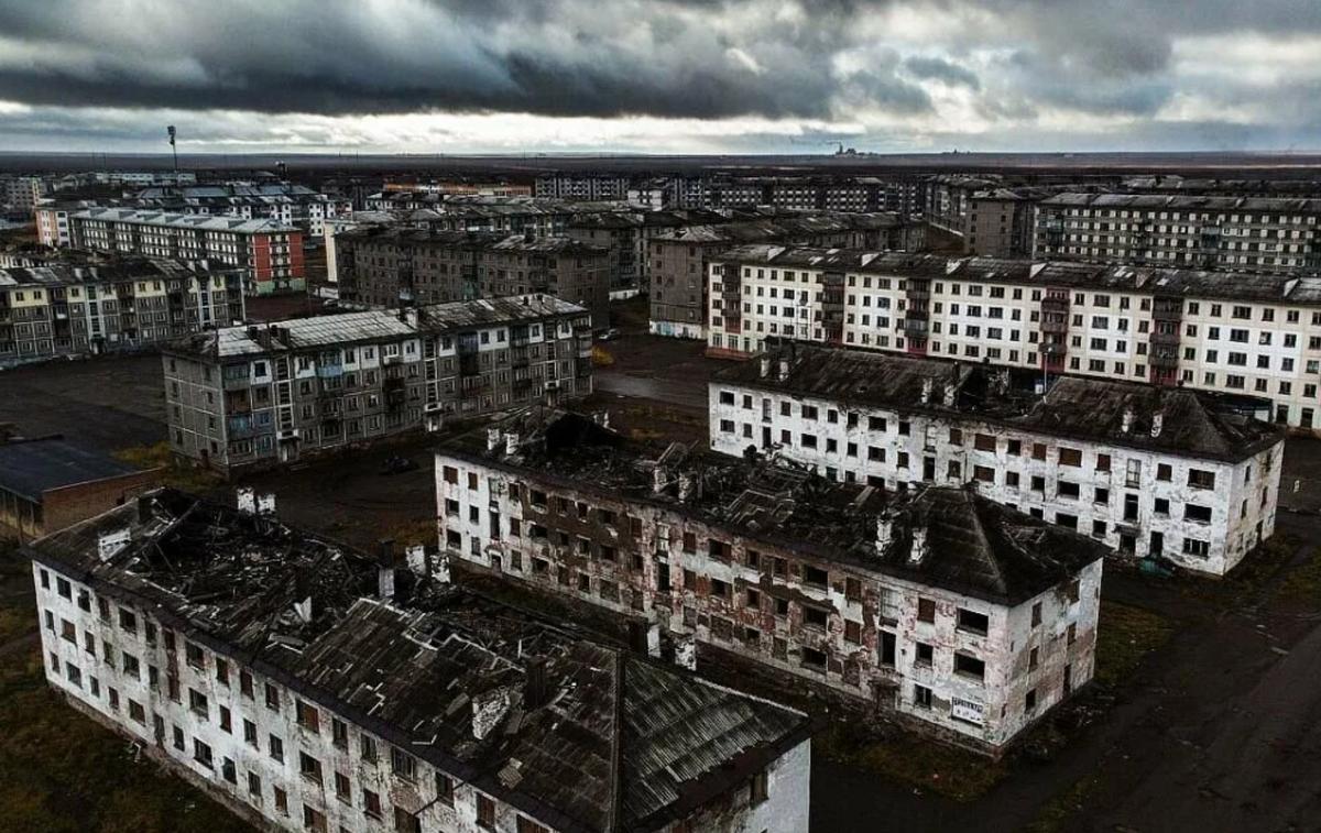 Воркута всё больше напоминает декорации к фильму о конце света: заброшенные микрорайоны, потрескавшиеся фасады, выбитые окна, скелеты пустующих зданий. Квартиры здесь стоят копейки — примерно как в Москве в лихие девяностые. Говорят, что за жильё можно даже обменять старенький автомобиль, но желающих на такую сделку почти нет.