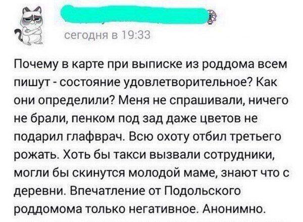 Вот, оказывается, почему снижается рождаемость. Чтобы не отбивать у женщин желание производить на свет третьего ребёнка, нужно обязать главврачей дарить роженицам цветы, а сотрудников – вызвать таким дамам такси и оплачивать их проезд.