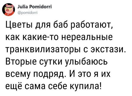 Правильно говорит Якубович, что женщина без цветов – не женщина. Поэтому, если их некому дарить, придётся самой покупать для себя любимой букет.