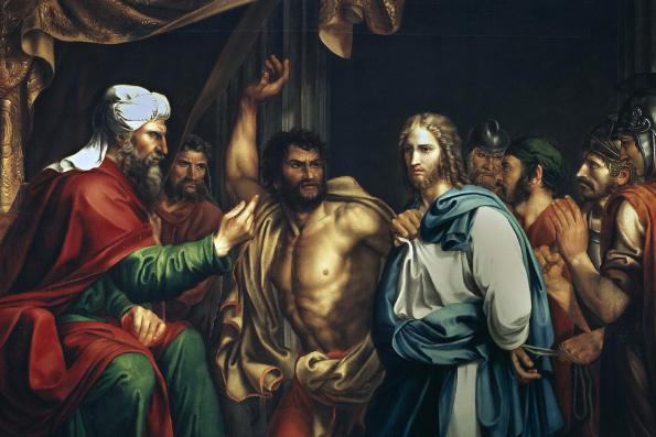 Возмущенный ответом Господа первосвященнику, один из служителей ударил Христа по щеке. Как же отреагировал Спаситель, ранее призывавший учеников подставлять другую щеку и не противиться злому? Вместо смиренного и унизительного молчания мы видим возражение: