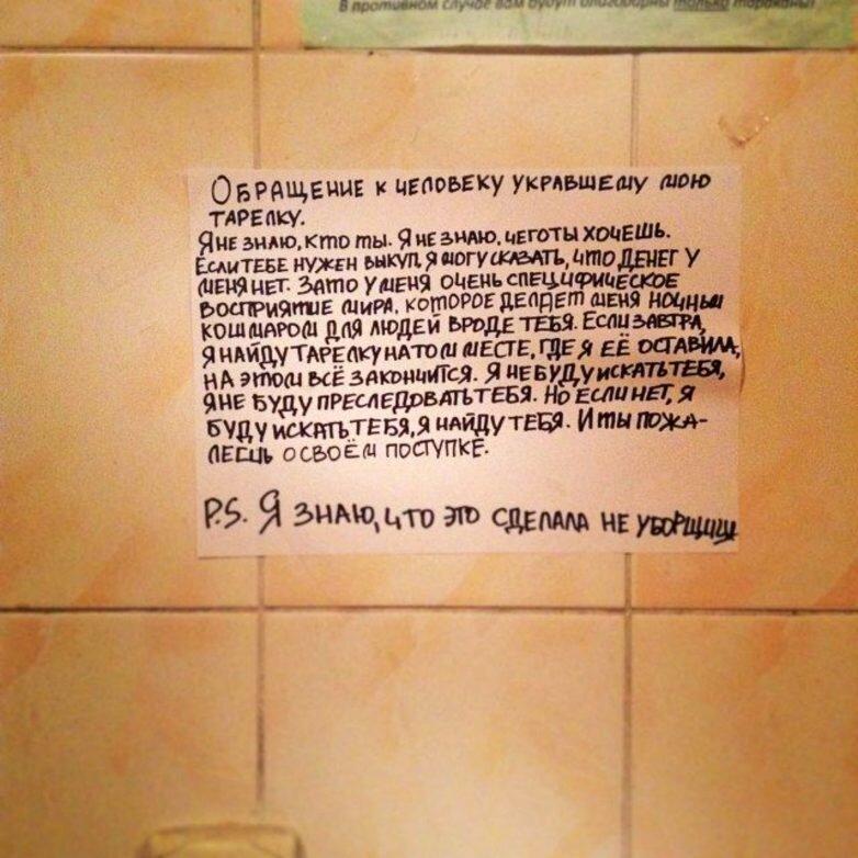 Это похоже на угрозу. Верните тарелку по-хорошему, а то ночных кошмаров точно не избежать.