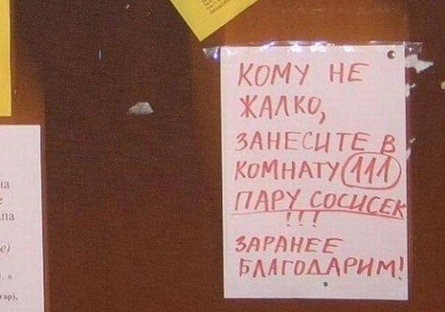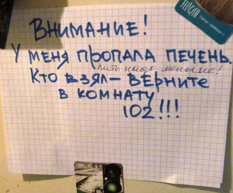 Студенческие общежития — это отдельный мир со своими правилами, законами, казусами, нарушителями и наказаниями. Скучно там уж точно не бывает, а как отдельный вид искусства можно выделить объявления. У студентов, которые их пишут, определенно хорошее чувство юмора. Примеры лучших записок — в подборке корреспондента агентства «Минск-Новости».