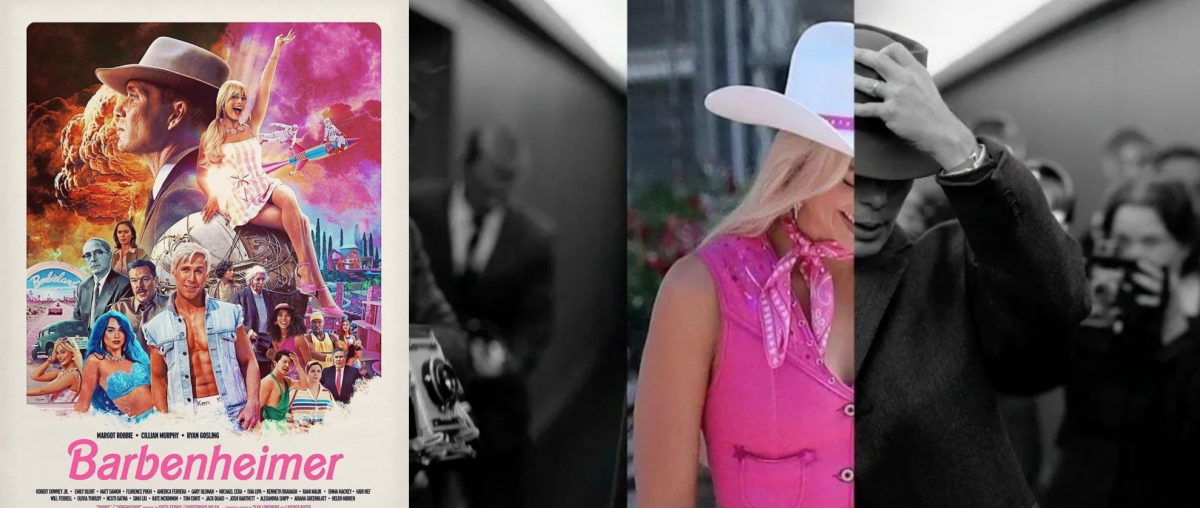По-настоящему удачных мемов на фильм «Барби» я не нашла ни на русском, ни на английском языках. Тем не менее мне понравились коллажи в стиле «Барбигеймер», которые обыгрывают тот момент, что эти блокбастеры вышли практически одновременно, и зачастую люди ходили на оба фильма в один день.