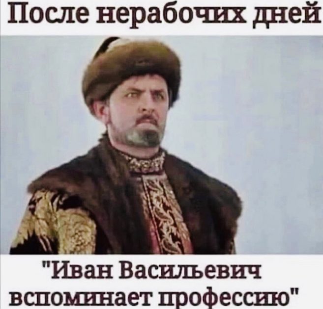 PS: шедевр, появившийся после новогодних праздников (судя по всему, он навеян новогодней комедией ТНТ «Иван Васильевич меняет всё»)