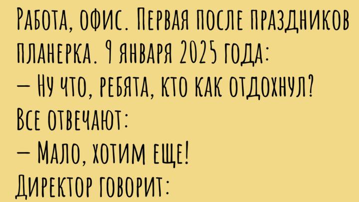 Работа, офис. Первая после праздников планерка. 9 января 2025 года: