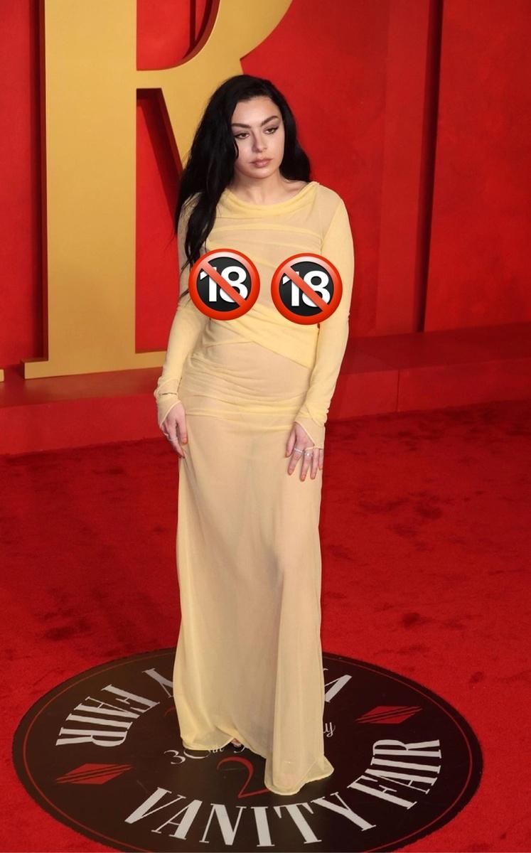 На вручении премии «Оскар» предельно откровенных нарядов не увидеть. Но вот на последующей затем вечеринке Vanity Fair звезды пускаются во все тяжкие. Вот, например, Чарли ХСХ выбрала платье в модном оттенке «сливочное масло». При этом оно было прозрачное, а нижнее белье Чарли посчитала не существенной деталью своего образа.