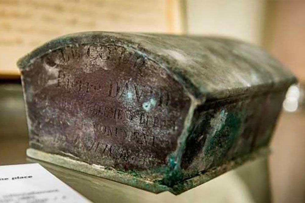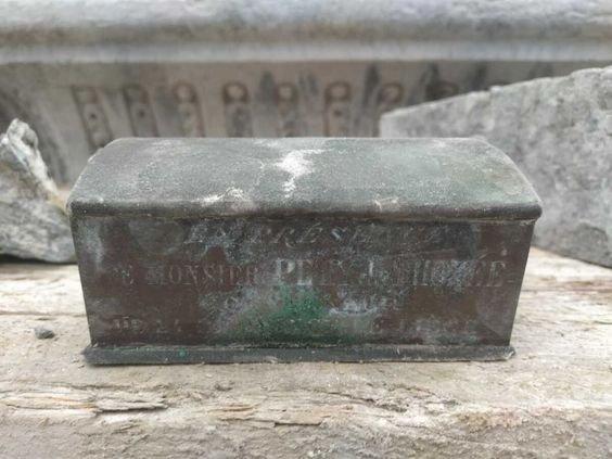 Когда рабочие обнаружили полый камень, возникло радостное волнение, что они возможно, обнаружили нечто потрясающее. Ведь они могли найти частичку истории! Внутри камня находился небольшой цинковый ящик.
