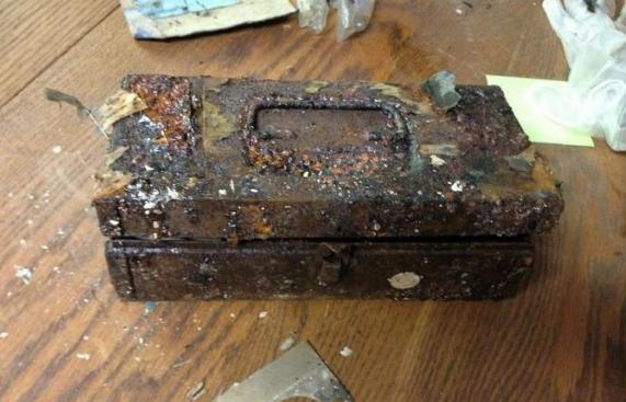 За этой дверкой был убран один кирпич(как показано на картинке). И в этой полости лежала металлическая коробка, засыпая кирпичной крошкой.