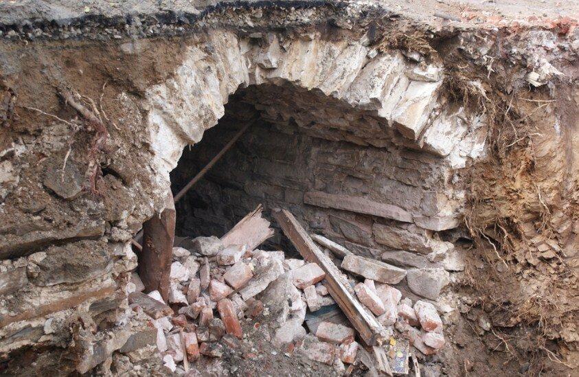 Дошли до фундамента. А в доме имелся подвал с небольшой комнатой, которая находилась за пределами дома. Но почему-то эта комнатка была заложена кирпичом.