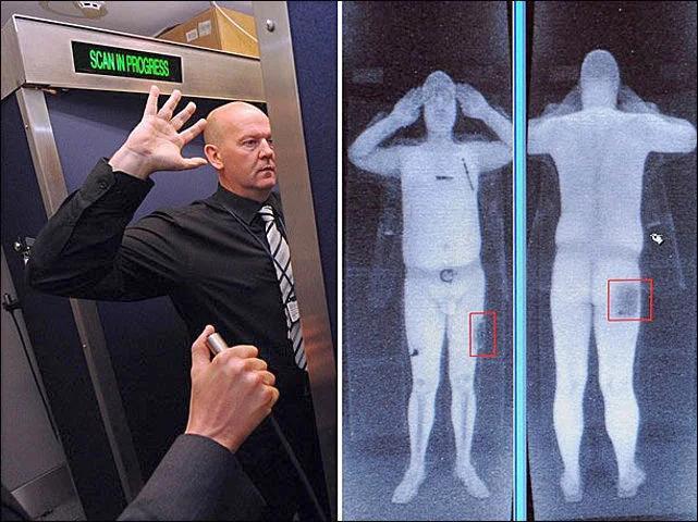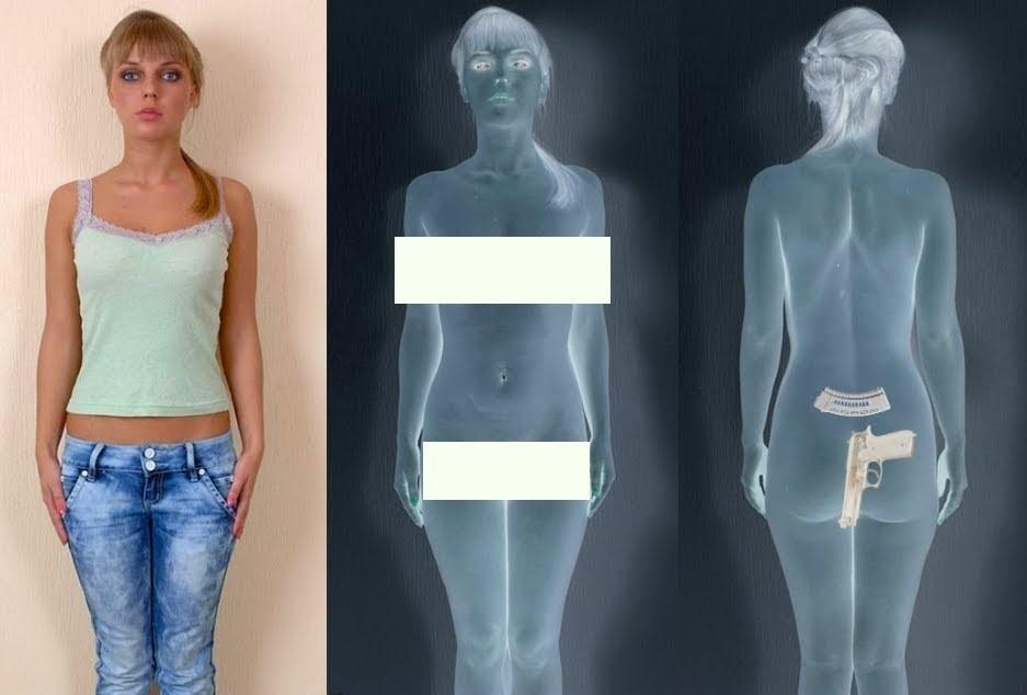 Ведь если обычная рамка металлодетектора просто обнаруживает металлические предметы, то рентгеновские и микроволновые сканеры создают полное изображение тела на экране и позволяют увидеть не только металлические, но и керамические, пластмассовые, резиновые и прочие предметы, спрятанные под одеждой и, говорят, даже внутри тела человека.