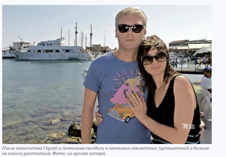 Вернувшись в Москву, актер постоянно думал о ней и вскоре начал ухаживать. Сергей и Антонина ездили отдыхать в Адыгею, на Кипр, а потом юморист и вовсе забрал Антонину в гастрольный тур. Влюбленные поняли, что больше не хотят расставаться, и девушка переехала к Сергею в Москву.