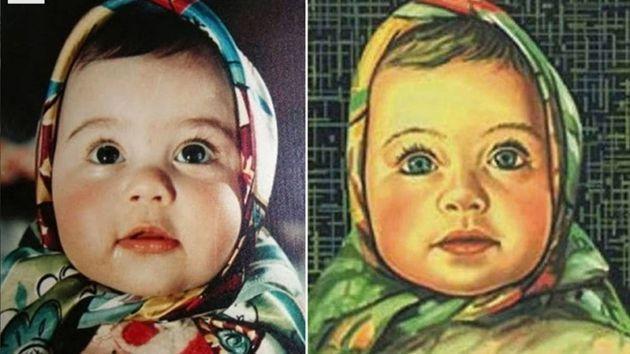 Жена художника сделала снимок дочки в 1960 году, когда той было 8 месяцев. Через 2 года портрет девочки был напечатан в одном из выпусков журнала «Здоровье». И когда в 1965 году в газете «Вечерняя Москва» был опубликован конкурс на лучшую обёртку шоколада, то сразу вспомнили об этой фотографии.