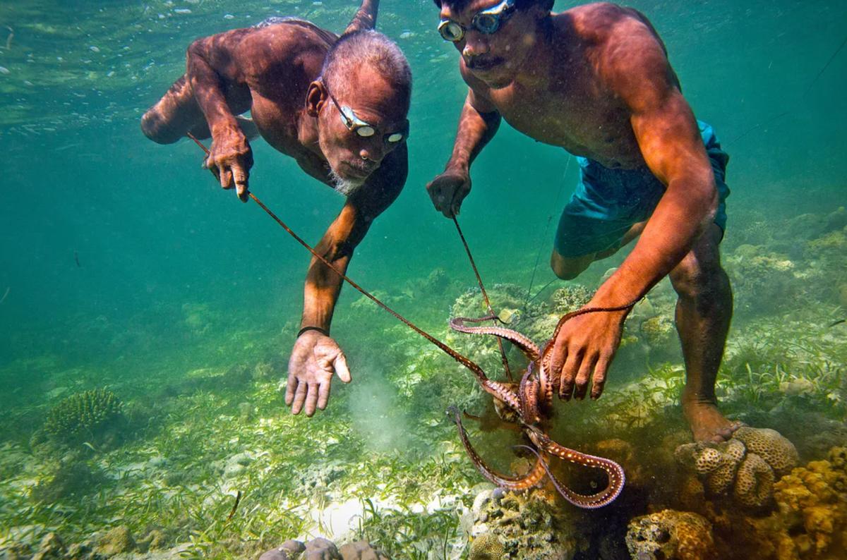 Чтобы достичь таких глубин, многие баджао намеренно разрывают себе барабанные перепонки. Молодые парни погружаются под воду, не выравнивая давление, и выдерживают адскую боль, чтобы в будущем нырять без дискомфорта. Неудивительно, что со временем у многих стариков слух становится слабым.