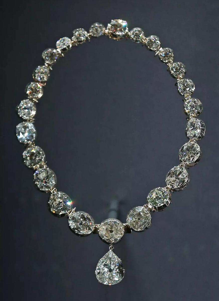 Еще один потрясающий экземпляр из шкатулки миссии Гревилл. Колье, которое можно разделять на ярусы, но королева выбирает носить все ярусы вместе.