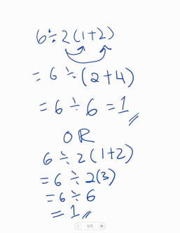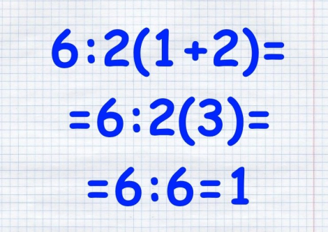 Можно легко догадаться, что те, кто получил в результате вычислений 1, сначала выполнили действие в скобках. После этого, они умножили получившуюся цифру на 2, а потом уже разделили 6 на то, что в итоге у них получилось.