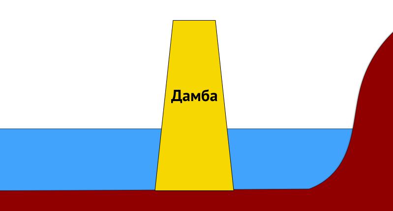 В эту дамбу монтируются гидроагрегаты (грубо говоря, турбины, вращаемые водой):