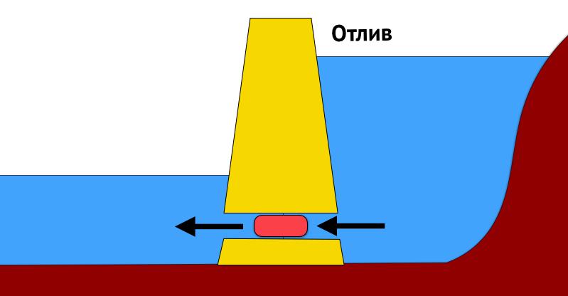 Во время отлива происходит обратная ситуация – вода вытекает назад и снова вращает турбины: