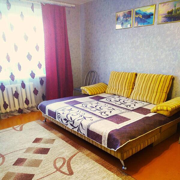 Пестрый текстиль. Ковер, тюль, шторы, покрывало и даже обивка дивана — основная проблема комнаты. Глаз не понимает, за что «зацепиться», двигается хаотично, а не последовательно. На месте хозяев я бы заменила все, кроме дивана. Посмотрите, какой интересный у него рисунок. Да, модель на хромированных ножках устарела, но ее можно интересно обыграть, сделать изюминкой помещения.