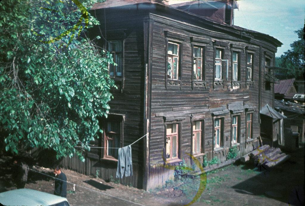 «Но что же представлял собой «двор»? Опишу свой. Он был довольно большой, примерно 100Х70 метров, огорожен двухметровым забором. Тяжелые ворота с «верхом», запиравшиеся слегой, с калиткой, которая до 30- х годов тоже запиралась на ночь. Два двухэтажных дома — флигели. Один фасадом выходил на проезд, другой стоял в глубине. По одну сторону двора — ровный ряд сараев, каждый на одну квартиру. Там хранились дрова и всякая рухлядь. В нашем дворе росли пять огромных вековых тополей. Кроме того, вдоль квартиры Катерины Ивановны (во внутреннем флигеле) был «сад»: несколько яблонь, ветвями упиравшихся в наши окна на втором этаже, кусты смородины, малины, просто высокая трава, золотые шары. В каждом флигеле по четыре трехкомнатных квартиры и по две однокомнатных. В некоторых из них жило по две-три семьи. Наша квартира — явно «привилегированная». От ее крыльца до ворот метров пятьдесят. Входная дверь фигурная, резная, двустворчатая. Широкая лестница в 22 ступени, с одной стороны которой выложена толстая кирпичная стена — отличительная особенность флигеля, как бы опора всей остальной деревянной постройки».