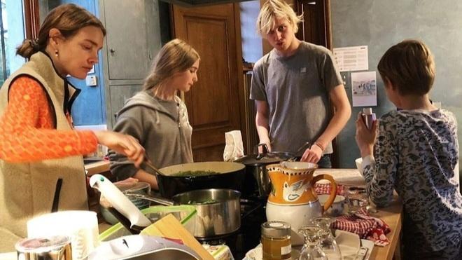 Судя по всему, Наталья приучает своих детей готовить самостоятельно. Ничем другим не объяснишь постоянное присутствие у кухонного острова и гарнитура сразу всей семьи. Да не просто в праздном ожидании пищи, а с ножами и прочими приспособлениями для готовки в руках.