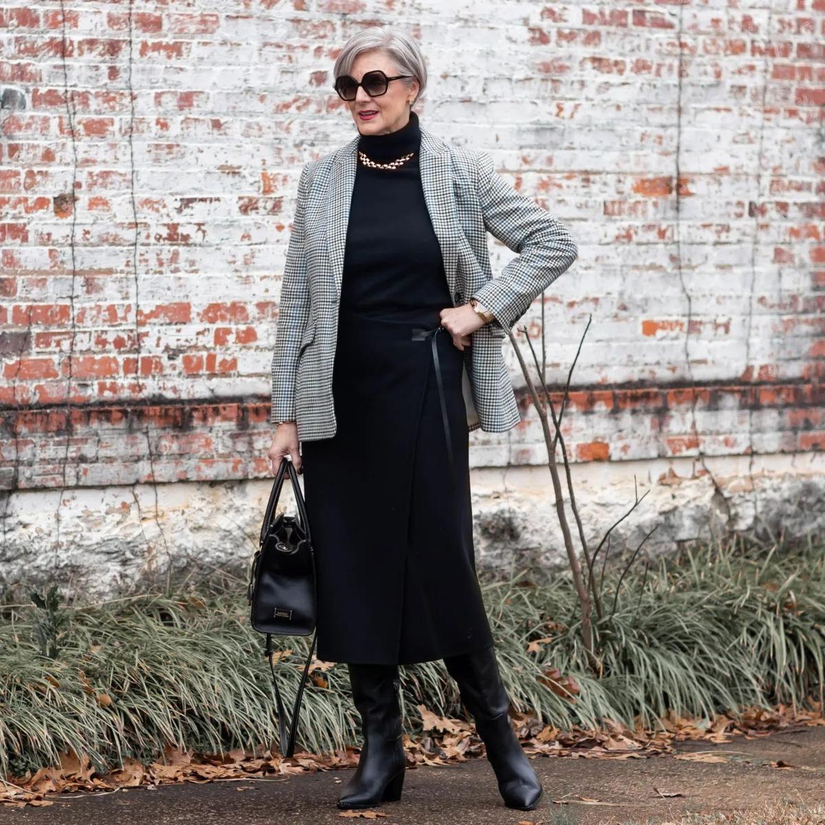 Альтернативное решение – полупрозрачные черные вещи, удаление черного от лица с помощью выреза, объемных украшений или вещей светлых оттенков.