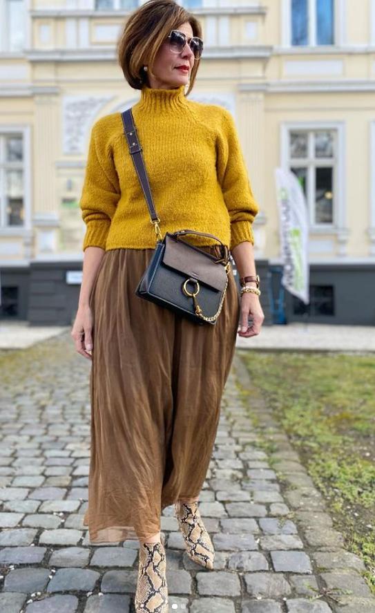 4. Глухой коричневый. Коричневый цвет принято считать цветом мрачности и старости, на его фоне кожа выглядит землистой и нездоровой, создается общее впечатление болезненности. Тусклый коричневый цвет и сам по себе выглядит не слишком привлекательно, но на женщинах за 60 еще и значительно удешевляет образы.