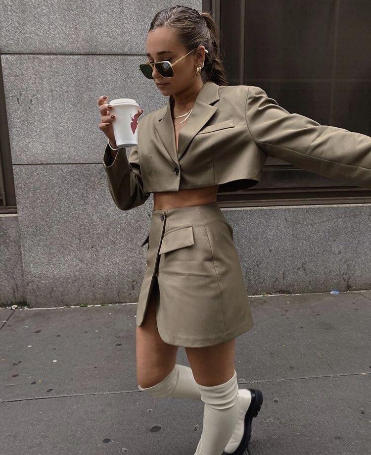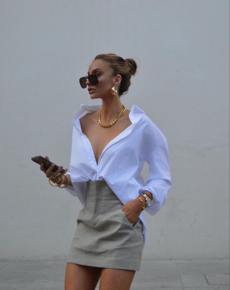 Подобные фишки лучше оставить для свиданий или вечеринки, а на интервью одеться поскромнее: сделай выбор в пользу юбки длины миди или чуть выше колена, в качестве верха надень шифоновую блузу, на ноги обуй сапоги с острым носом и заверши образ блейзером оверсайз.